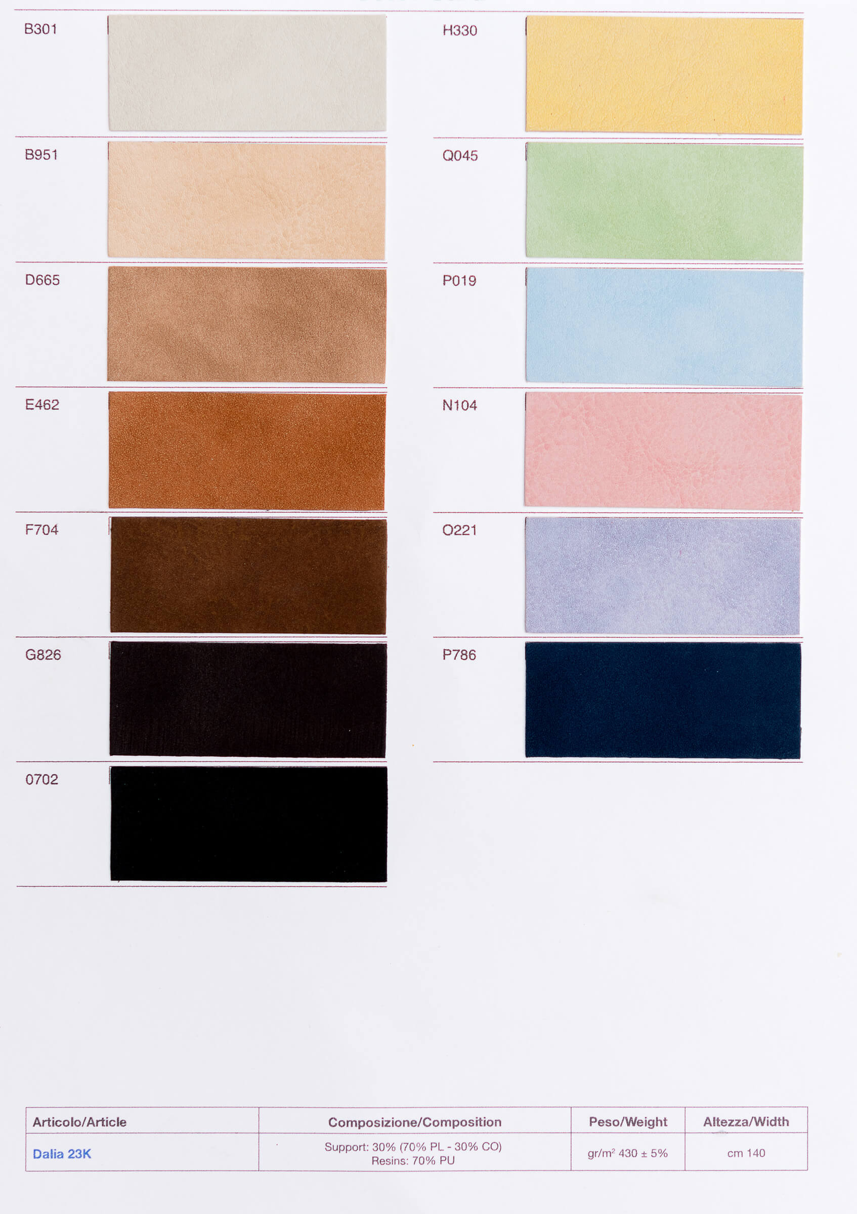 Une gamme avec un aspect et un toucher qui impressionne par sa ressemblance avec un cuir dense et hautement esthétique. Un cuir végane très résistant, antibactérien, sans PVC et qui ne contient aucun produit nocif pour la santé humaine.