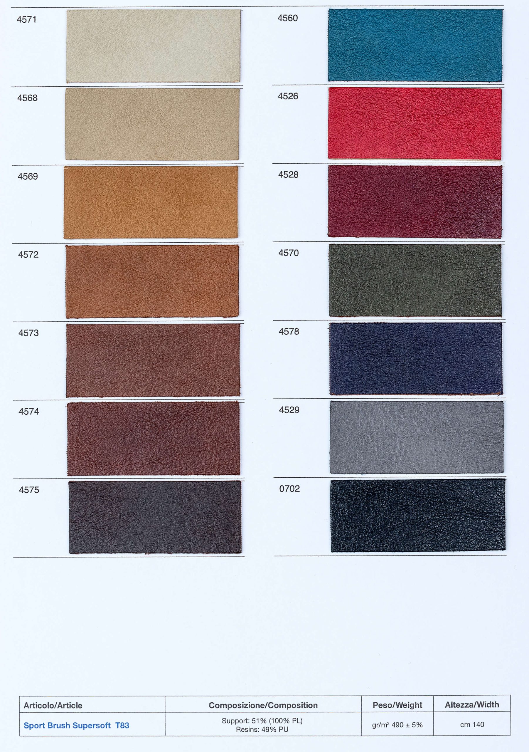Un cuir végane au fini classique, mi-teinte et suède.